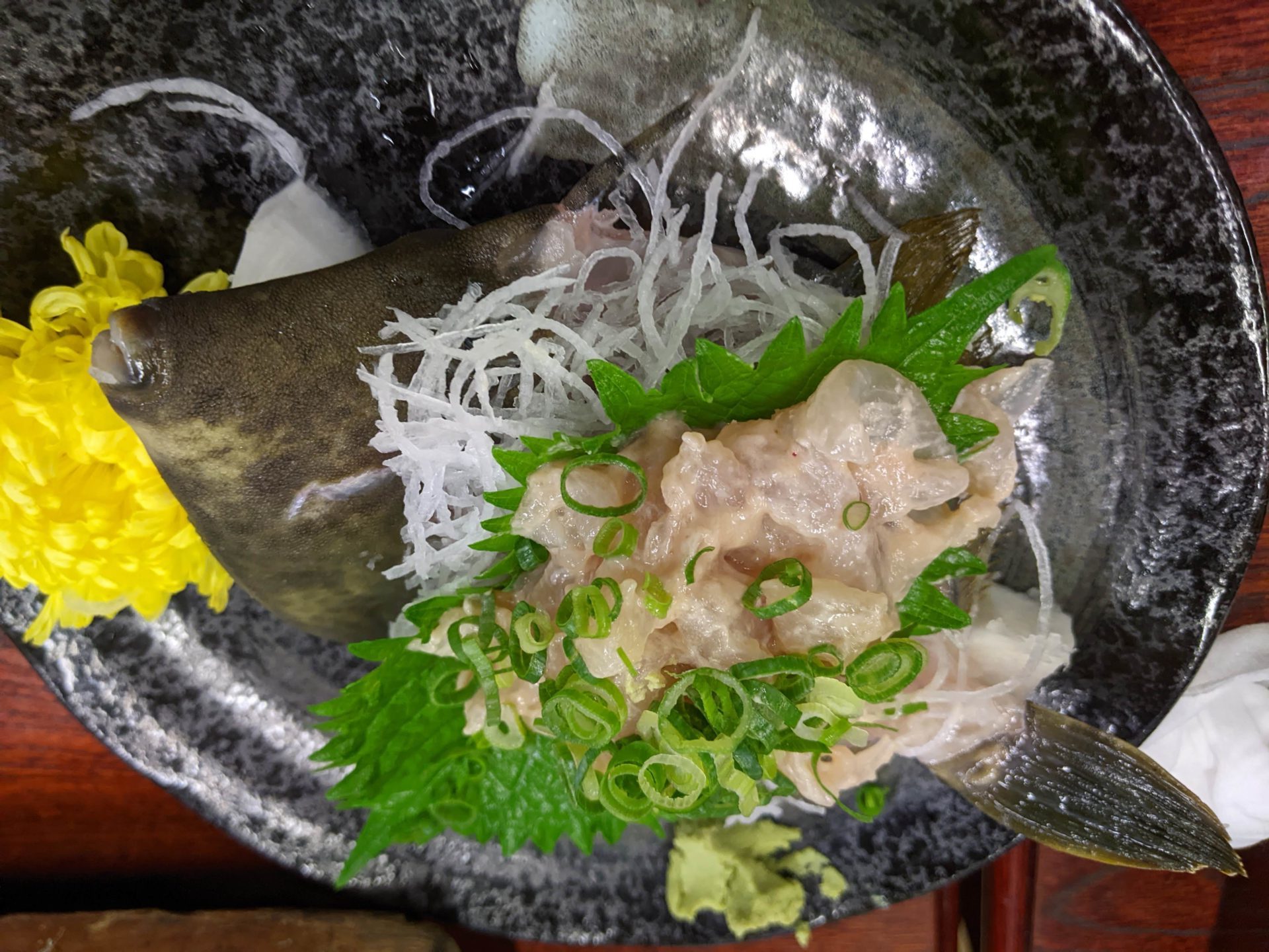 新鮮なカワハギだからこその料理です。釣り人の特権ですね。