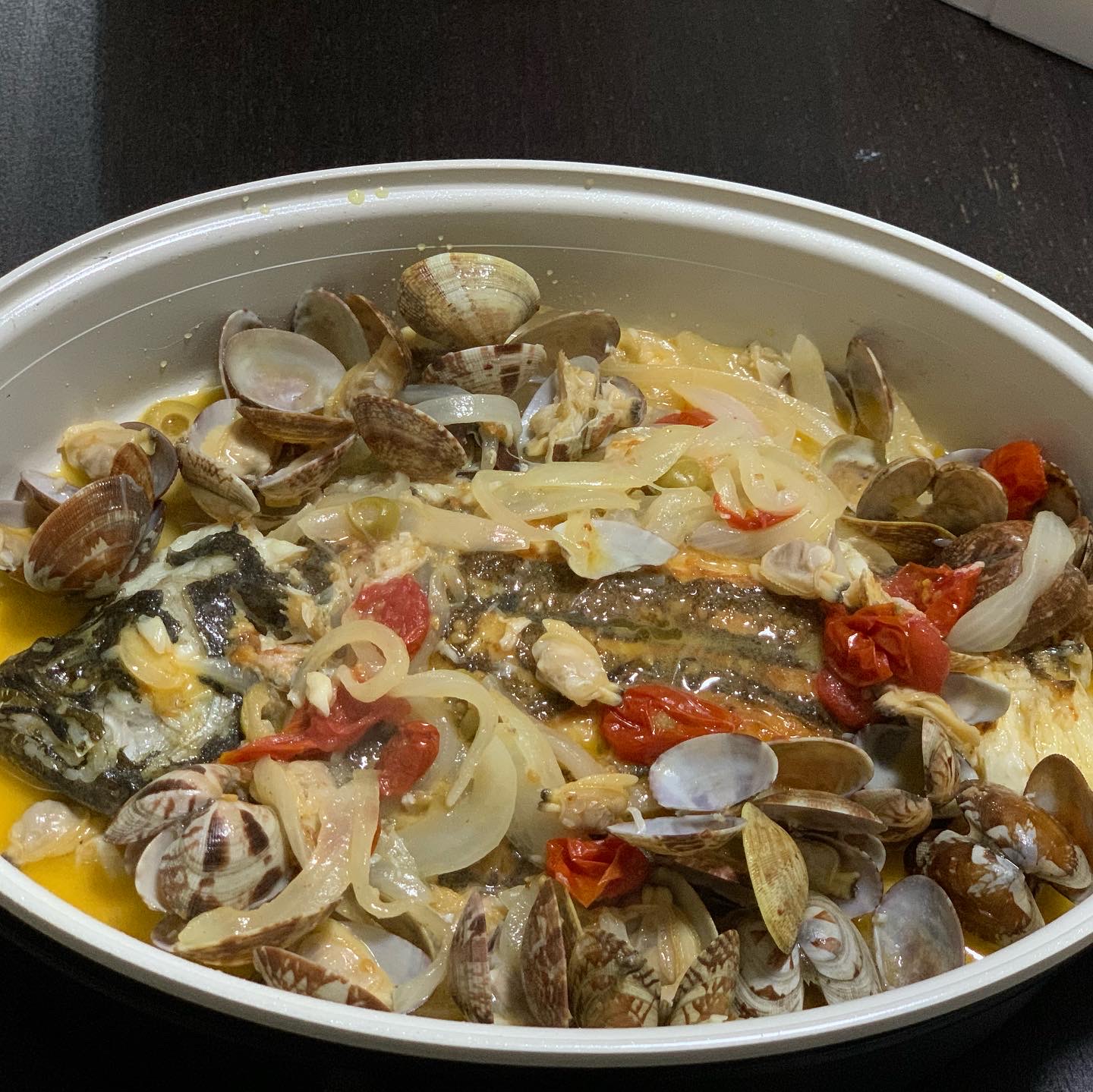 カンコ(ウッカリカサゴ)を使ったアクアパッツアです。
