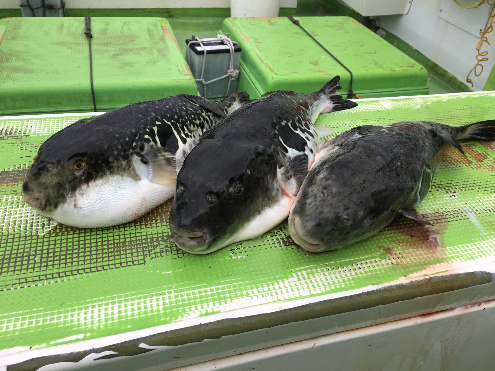 結果、0~4匹となり、白子と共に半分以上の人がトラフグをゲットできました。全員合計で20匹以上釣りあげたことになりますので、トラフグ例会では過去一の釣果でした。来年は全員安打を目指したいですね!