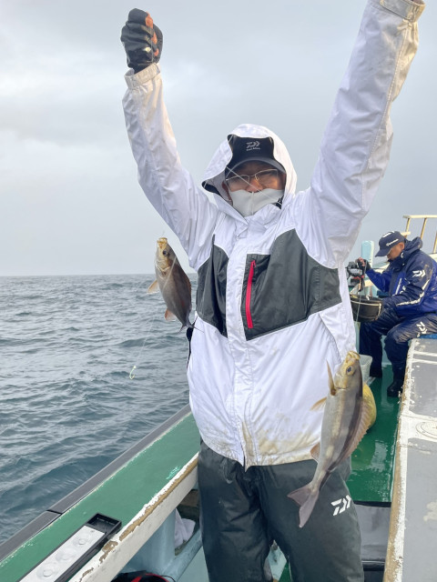 10時過ぎまで終始好調に釣れました。(雨風も強くなり、全員爆釣で、沖上がりは、10時40分頃)
