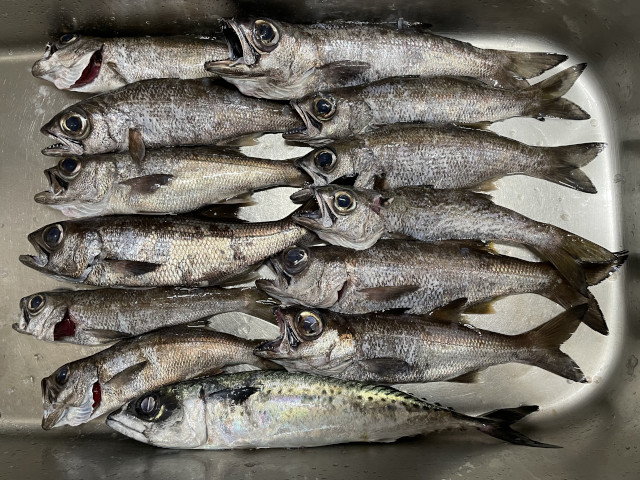 | 状況 | 参加者それぞれ、早めの移動をして内房の海の幸を堪能後、勝山港に集合。 集合時間の15:30には集金・釣り座確定まで終了し、あとは船に乗るばかりの状態。 気合い十分、いざ出航。 ポイントは洲崎沖で昨年と同じ場所、釣行開始早々、サバの層をかいくぐり底付近まで仕掛け投入が出来、即ヒット! 慎重かつスピーディに上げても「あれ?反応が下品!」ということで上がった魚は良型のサバばかり!サバ祭りです。 本命クロムツはぽつりぽつりと終始渋めの状態が続き、終わってみれば竿頭19匹という若干 物足りなさが残りました。それでも期待の外道スミヤキの攻撃もなくタカギレにならず、美味しい クロムツを各自持ち帰ることが出来、非常に楽しめた釣行企画でした。 やはり萬栄丸半夜クロムツは固いですね! | |