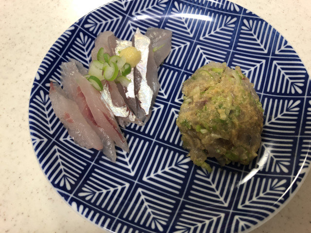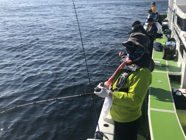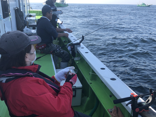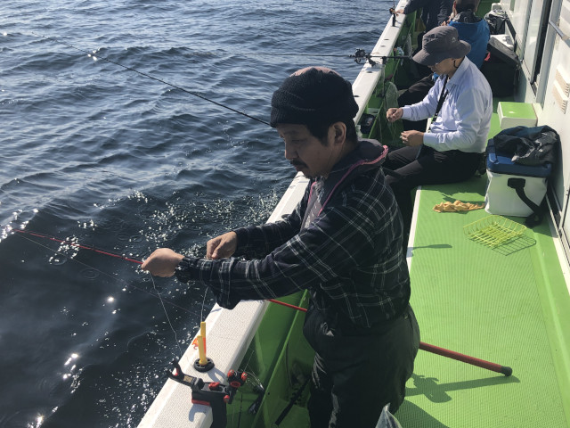 | 状況 | 電車移動で参加できる朝ゆっくりめの入門者向け例会として、 葛西橋近くの第二泉水から出船。 富津沖まで1時間程度の海上移動。 まずはタチウオに挑戦し竿頭7本、渋い状況ながら全員が釣りあげることができました。 11時からはアジ釣りリレーに切り替え10〜20匹の釣果でした。 タチウオの炙りに、アジのお刺身となめろうを、おいしくいただきました。皆様、お疲れさまでした。 | |
