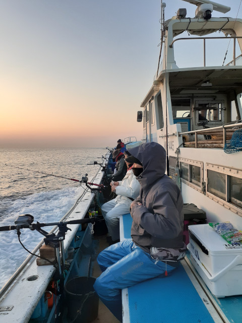 午前6時、大磯港恒丸受付にメンバー12名全員集合。定刻の6時半に港を出航、