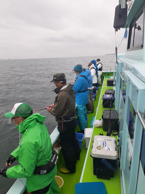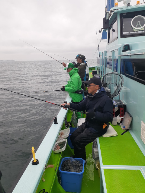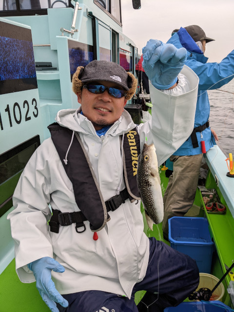 | 状況 | 金沢八景に三々五々お集まりいただき、メンバー9名のため、仕立とならず、乗合船便乗の形となりました。 6時半には船宿から船に移動完了し、小雨交じりの中7時15分無事出船し、一路大貫沖のポイントに直行しました。 まずは、富津・大貫沖の胴付釣のポイントでスタートフィッシング。 皆さん細かい当たりを取れる方はポツポツと大型のショウサイフグを釣り始める。 胴付釣では如何にゼロテンションを作ってフグに食わせてあたりをとる形になりますが、 言うが易く実施は非常に難しいテクニカルな釣になりました。 後から振り返ると大型はこの大貫沖の胴付釣で数が出せたかどうかで当日の釣果が別れました。 シロギス釣、カワハギ釣では外道としてフグは釣れるものの、 専門に釣ろうとすると何故釣れないのだろうと素直な疑問を抱きつつ 皆さんもくもくと繊細なあたりを取るべく頑張って対応しました。 船長は丹念に潮回りを繰り返し群れを探っていきますが船中ポツポツ状態が続きました。 11時過ぎの潮どまりを利用して船長は大きくポイントを変更し、富津岬の東京側に移動。 こちらのポイントは胴付仕掛けのの下をカットウ仕掛けに変更しての釣となりました。 型は大貫沖に比べて小型中心。その代わりある程度のあたりがあり、沖上がり迄このポイントを流しました。 終わってみれば船中TOP24匹でメンバー釣果は18〜2匹と釣果に差が出る形になりましたが ボーズ無で皆さん家路に付きました。 今回の釣行では当初「アカメフグ」狙いで企画しましたが、 東京湾だけではなく、全般的な海水温上昇のため、ショウサイフグが釣れ盛っていたため、 魚種が微妙に異なる形になりました。 行事を企画する段階、実際に手配に入る段階、実施日にそれぞれ期間が空、 フィッシング部の行事としては課題含みではありました。 海水温上昇が何気にフィッシング行事に影響を与えている課題はありますが、 ある程度の事前案内は必要なため、今後も影響を見つつ東京湾フグの釣行を計画して行こうと考えております。 | |