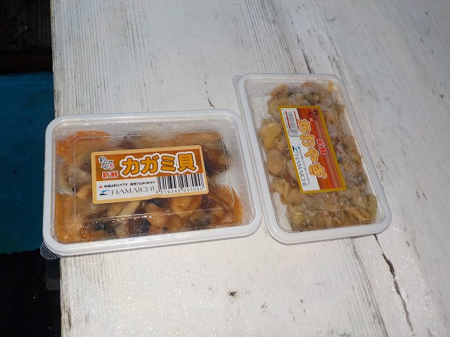 直前にアオヤギが品薄で全員分なく10名でアオヤギ5パックとカガミ貝5パックを10名でうまく分け合うという連絡があり、