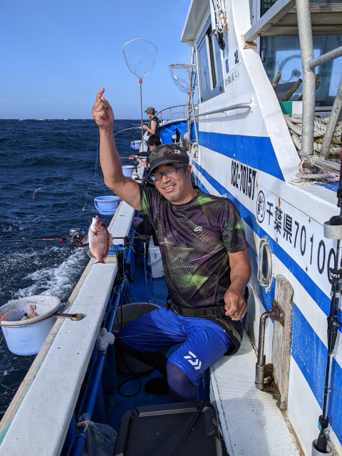 | 状況 | 釣行前日の宿泊は、いすみ市のかねも荘さんに16時集合。夕食前、夕食、その後は、シマアジ狙いの談義が盛り上がり、ハリスは、4号、6号、8号で、狼狙い。 黄色のビシが大好きな、シマアジを想定し、ビシの上にハリスをつけても釣れるとの南房総の実績者からの意見で盛り上がり、 期待を胸に、翌日の釣行に臨みました。 しかーーし、沖は超寒かった。。。シマアジ狙いのポイントは、水温が低く(15度以下)、 気温も影となった右舷では、半袖ではチョー寒い10度台の体感釣行となりました。 やはり、水温が低いと、シマアジ、イサキとも口をまったくといっていいほど使わず、あたりZEROのメンバが続出。。 最初から、最後まで、まったくあたり無しが大半をしめる結果となってしまいました。 あたりがあった方は、ハタ、ウマヅラ、鯛、イサキが1、2匹程度の釣果。。。 記念写真も、渋い表情での、ZEROポーズとなりました。 ここ数年、シマアジ狙いの合宿は不発なので、来年は、魚種、船宿とも、実績ありで最適な時期を選びたいと思います。 | |