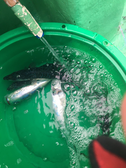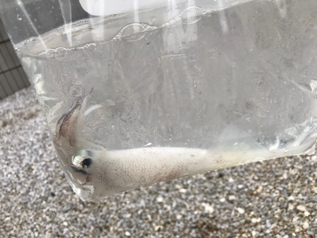 | 状況 | 朝5:00、30分前には、全員集合。 風はさほど強くなく、天気は曇り、後半は、雨が少し強くなりました。 船の投入機は、ほとんどが6本でした。(こちら案内は次回改善事項) 5:00前に全員集合着替えも完了。最近のヤリイカ釣果がいまいちの中、不安を胸に、5:30に出船。 風は少しあるものの波は高くなく、1時間ほど沖に出たところで開始。水深は180〜200m、底から10mの範囲での指示。 全員一向に釣れず、釣れても、OBの方一人だけ一杯と、いやーな雰囲気のまま、時間ばかりが経過していきました。 場所も転転とするも、かかっても、鯖ばかり。 雨も降りだし、4時間ほど経過しても、状況よくならず、浅場の、ムギ、丸イカ狙いに変更し移動。 水深は100m弱、錘120号に変更。 ムギ、丸イカ経験のあるかたは、何とか型を見ましたが、それでも、一人1杯〜2杯がいいところ、おでこも出てしまい、非常に残念な結果となりました。 次回は、釣行前の状況で、魚種の変更も臨機応変に検討したほうがいいと感じました。 帰港後、恒例?の生わかめのお見上げをひとり手提げビニール一杯分お土産でいただきました。 家で、沸騰したお湯にくぐらせ、小分け(30回分以上の量でした)にして冷凍保存しました。酢の物、お味噌汁用に重宝です。 | |