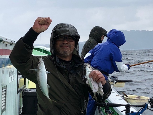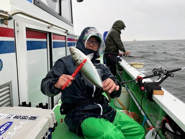 | 状況 | 朝6時には8名全員集合、船宿が開くのを待って手続きを済ませ、船に乗り込みました。 無情にも天気予報は当たって、雨が降ったり止んだりで、釣っている最中も一時強く降ったりもしましたが、無事寄港出来ました。 最初は水深30メートル程度の場所で比較的小型サイズでしたが、途中から90メートル位の場所に移動して、30センチから40センチクラスの大型も釣れ出しました。 他にサバやカサゴ等も。 帰宅後、刺身、なめろう、干物、フライ、塩焼きなど色々な料理で楽しめました。 ありがとうございました。 | |