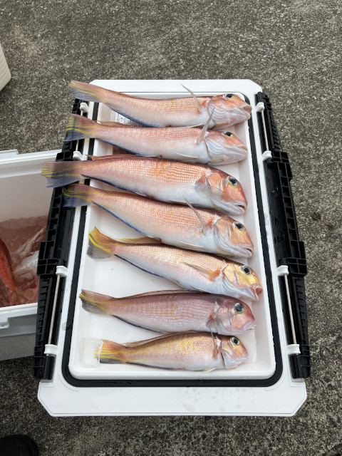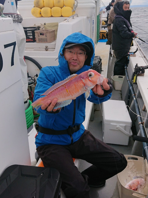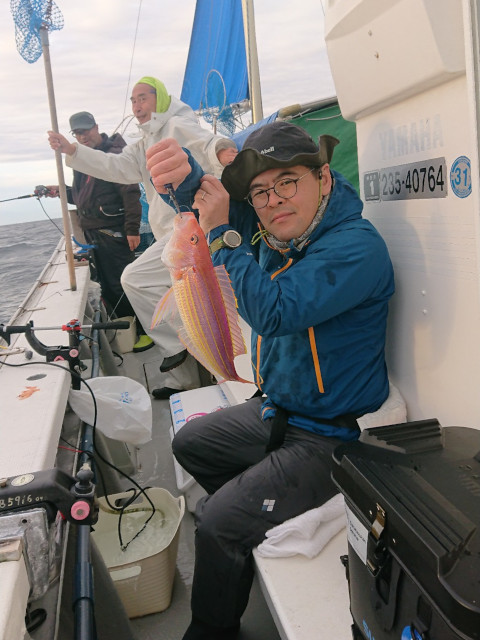 | 状況 | 昨年に引き続き椿丸でのアマダイ釣行です。 予報では北風が強く不安はありましたが、朝一は風の影響を受けにくい浅場で白アマダイ狙い、 風が落ち着いたところで深場での大型狙いという船長の言葉と共に6:45に出港。 朝イチの浅場(45m)ではポツポツと揚がり、また大型ではないものの貴重な白アマダイや、 船長曰くレコードサイズのイトヨリも飛び出しました。 9時を過ぎるくらいからは深場(90m)に移動して葉山沖を流し、 途中激しい突っ込みのビッグファイトののち針外れなど残念な場面もありましたが、 最終的には1〜7匹の坊主なし、イトヨリ、マハタ、ホウボウも混じる楽しい釣行となりました。 帰港した後、船宿でおにぎりとお茶、お土産の生シラスを頂き解散となりました。 昨年もそうでしたが、アットホームな雰囲気で中乗りさんも2名体制、タオルやお茶、 昼食の船上カップラーメンサービスと至れり尽くせりなので、またお世話になりたい船宿さんです。 参加された皆さん、お疲れ様でした! | |