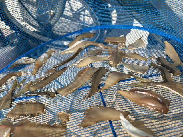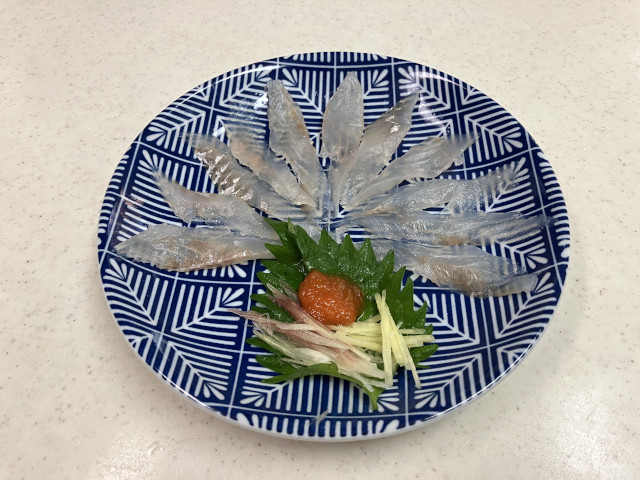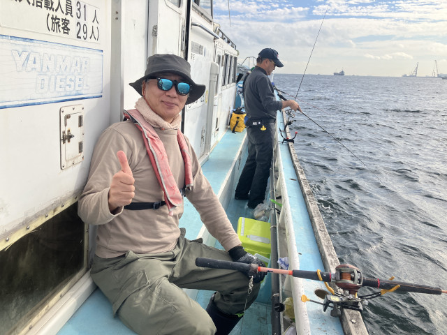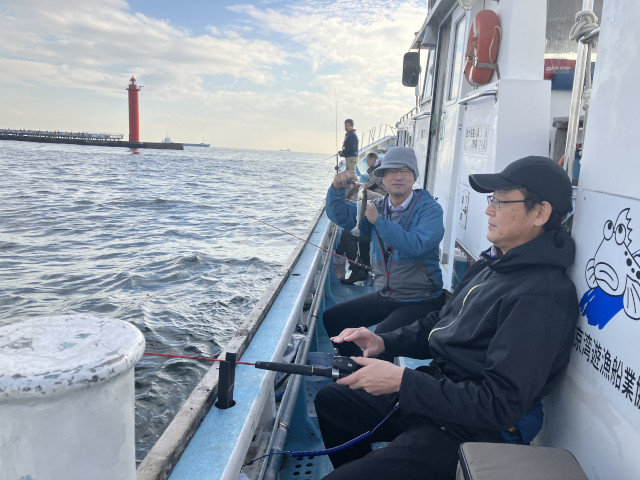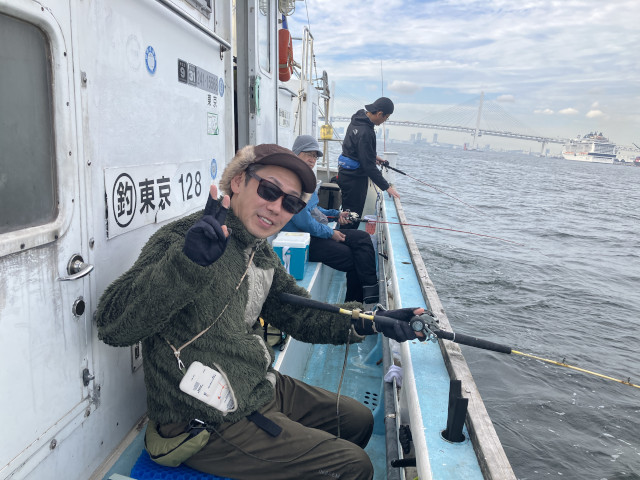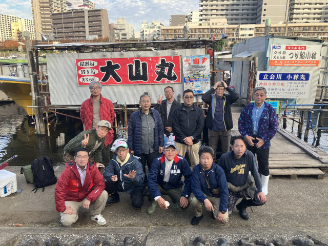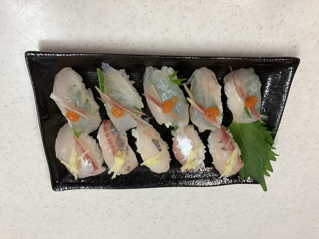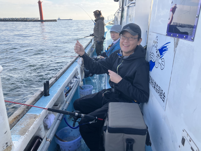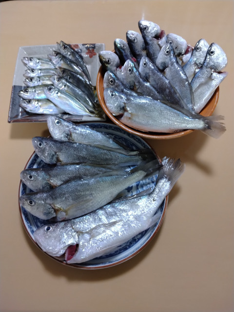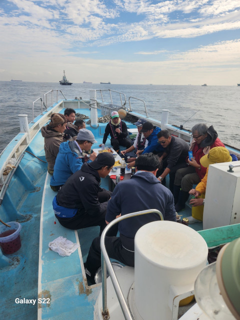 | 状況 | 11月下旬にして気温20度を超える暖かな日、海も穏やかで晴天の最高の釣り日和に12名が参加。 数釣りで定番のイシモチ釣りながら、あたりがなくポツリポツリとあがる程度で渋めの釣行。 本命のイシモチは17〜5匹、アジが多数交じり、外道にマゴチやホウボウもあがりました。 昼食時間は船の上で揚げたての天ぷらを食べながら部員同士で歓談して親睦を深めた楽しい釣行でした。 淡泊な身のイシモチですが、昆布〆してお刺身と握りで美味しくいただきました。皆様、お疲れ様でした。 | |