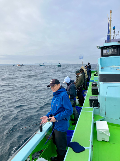 富浦沖には東京湾の名立たる船宿が集結しており、我々も負けじと釣りを開始、底から3mの範囲を丁寧に探ります。