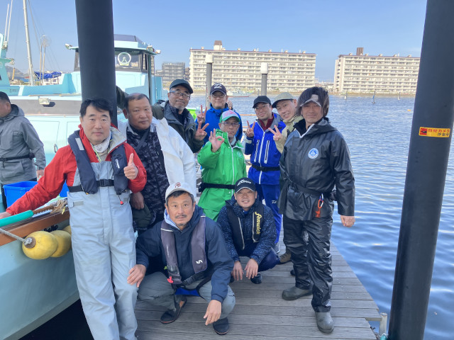 前日からの雨が残る中、集合時間5時半には参加者全員船宿前に集合。